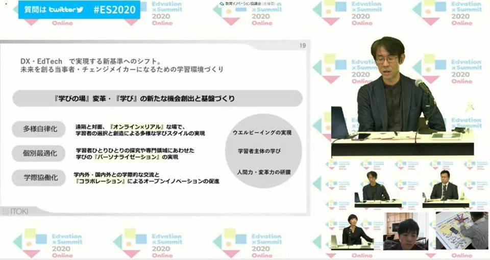 2020年11月3日から5日にかけて、国内における教育イノベーションの加速を推進すべく、世界初のEdTechグローバルカンファレンスイベント「Edvation×Summit 2020 Online」が開催されました。5日には、イトーキ 先端研究統括部 統括部長の大橋一広氏をモデレーターに、セッション「『ネクストノーマル、世界基準のイノベーター人財育成に向けて』〜産官学で取り組むイノベーション・エコシステムへの取組みとは〜」が行われ、産官学の有識者3人が登壇。その再録の後編をお届けします。