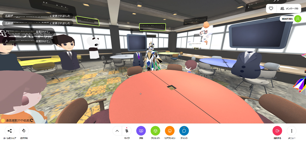 生徒の皆さんには、メタバース空間がいかに自由な表現が行えるかを知っていただき、表現の手段における固定概念をリセットしたのち、研究活動に打ち込んでもらいました。