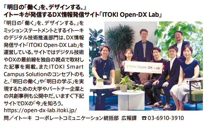 この度、弊社の運営する本ウェブサイトITOKI Open-DX Labを、AERAにてご紹介いただきました。