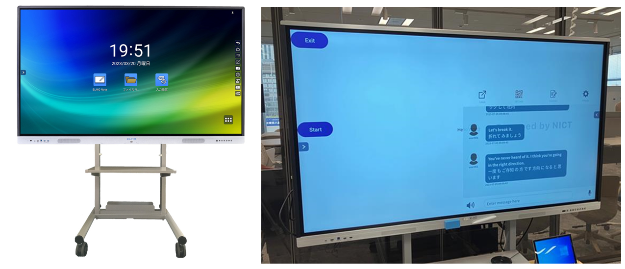 「翻訳アプリ」は、電子白板向けの翻訳アプリケーションで、共有資料や動画などのコンテンツに訳語を重ねて表示します。これまで海外の人と話す際は、話してから訳されその訳をみてからまた話し始めるといったスタイルでしたが、このアプリを活用することで、円滑に言語の違う人同士がコミュニケーションをとることが可能になります。また、留学生もネイティブにおいていかれないスピード感で講義に参加することができ、講義への集中度・理解度も高まると考えられます。