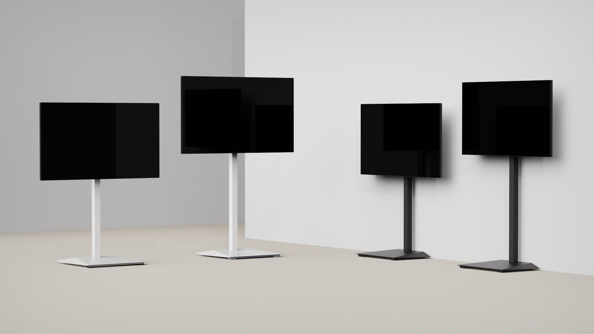 シンプルな形状のベースと66mm角の細い支柱で構成されるスタンド本体はディスプレイを浮かせるように軽やかに支持します。役員室のようなフォーマルな会議室から、アイデア出しやラフな打ち合わせのためのカジュアルな空間まで、参加者がディスプレイの内容にフォーカスできる設えを作ることができます。