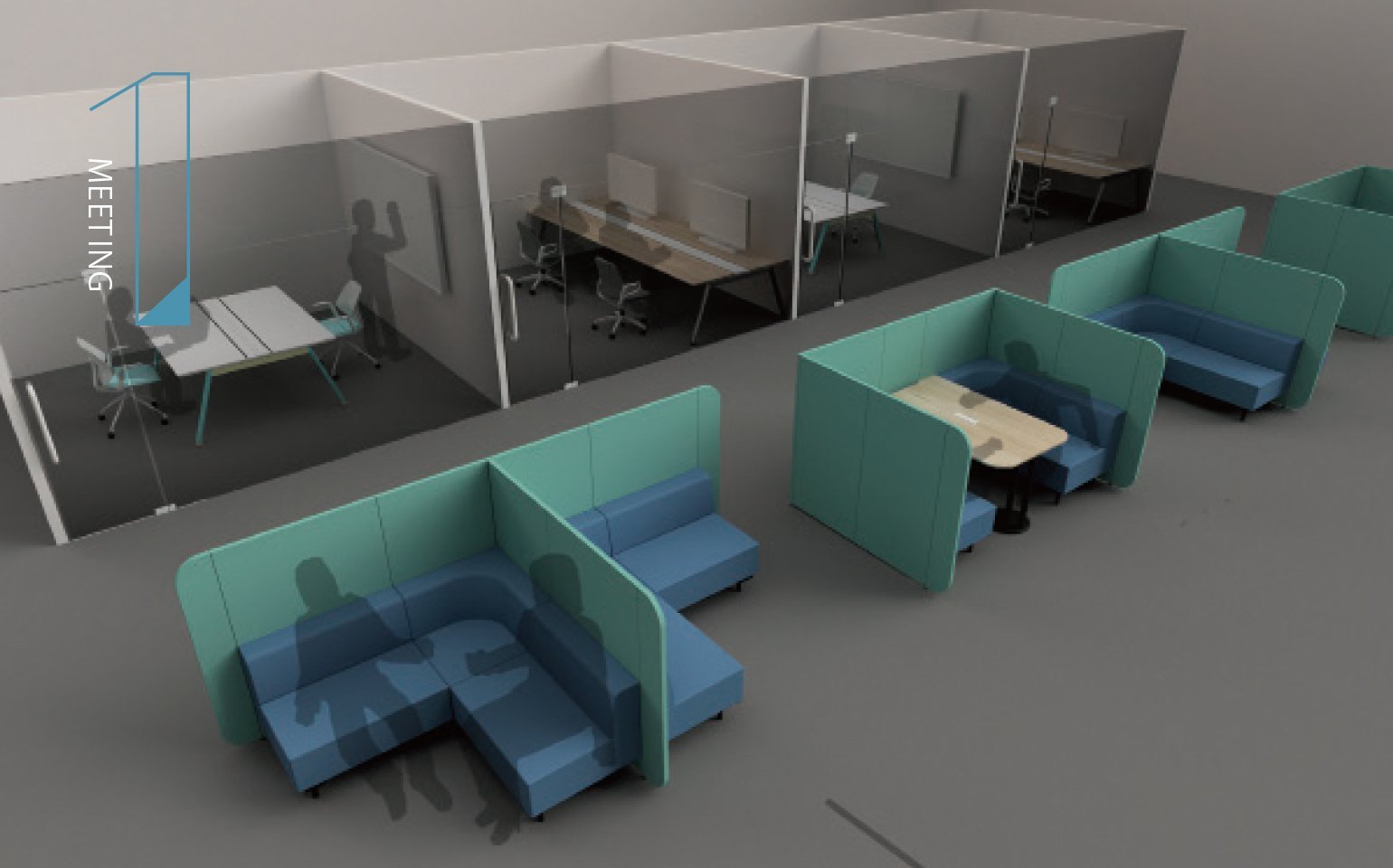 重要な企画を練り上げる。大切なプレゼンテーションの準備をする。機密性の高い書類を扱う。集中ブースなら、そんな業務を落ち着いて進められる。