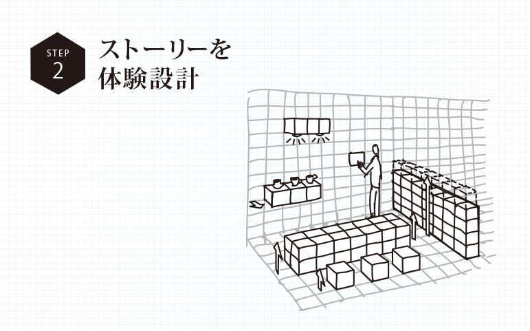 自己と組織の変革ビジョンと、それを実現するためのストーリーを踏まえ、個人の働き方を自在にア レンジできる空間のあり方を考えます。組織に属しながら、個人が行動の自由とこころの自由を獲得 できることが理想の姿。人と企業の関係から、時間と場所の使い方をデザインし、ともにかたちづくっていきます。