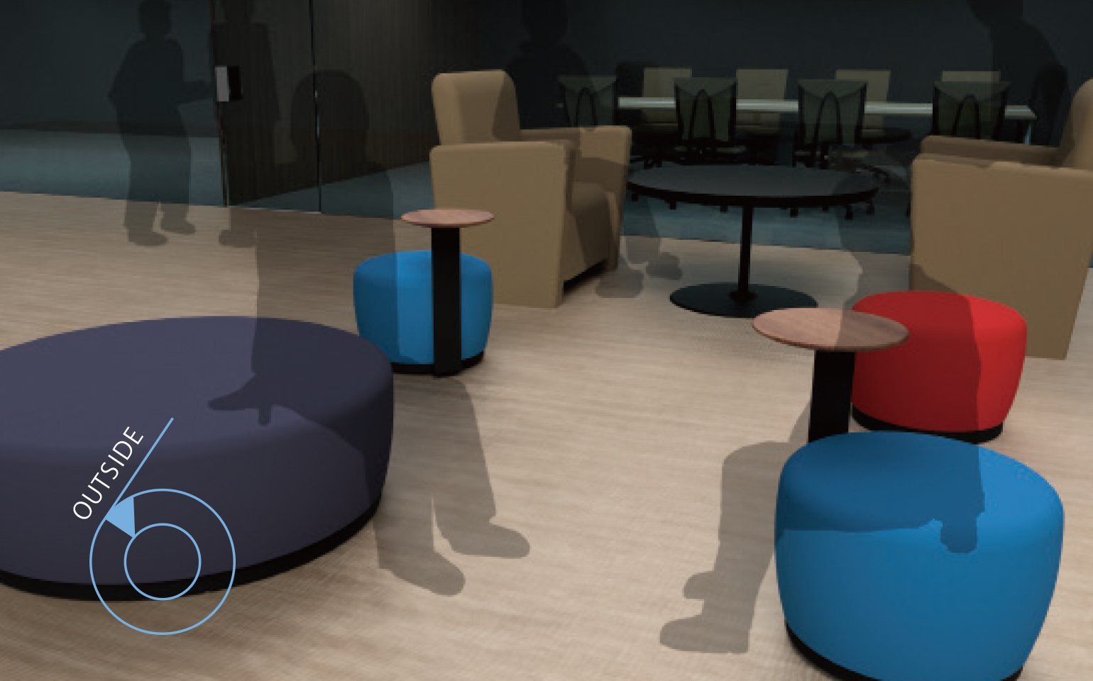 いつものオフィスの会議室。「普段はフォーマルな装いのお客様なのに、今日はカジュアルだな」。それならばと、「ちょっと場所を変えませんか?」。そう提案し、社内にあるセミクローズドなラウンジスペースへ。開放的で楽しげな雰囲気は今日のお客様の装いともマッチする。そう感じたのはきっと自分だけではない。場所の雰囲気が変われば、コミュニケーションも変わる。その後は会話が弾み、打ち合わせもスムーズに進んだ。