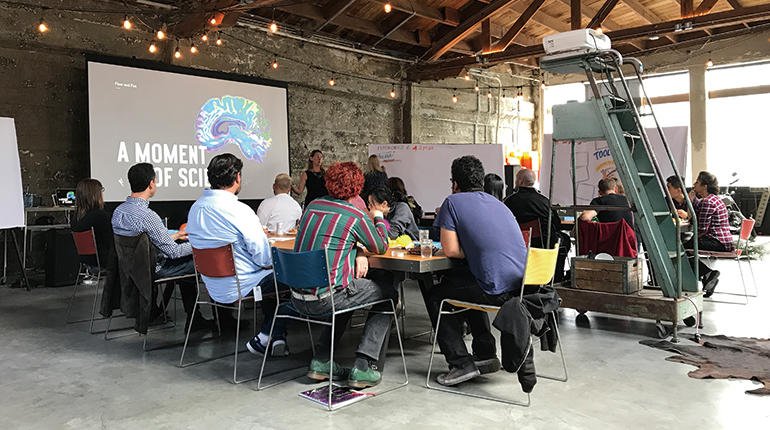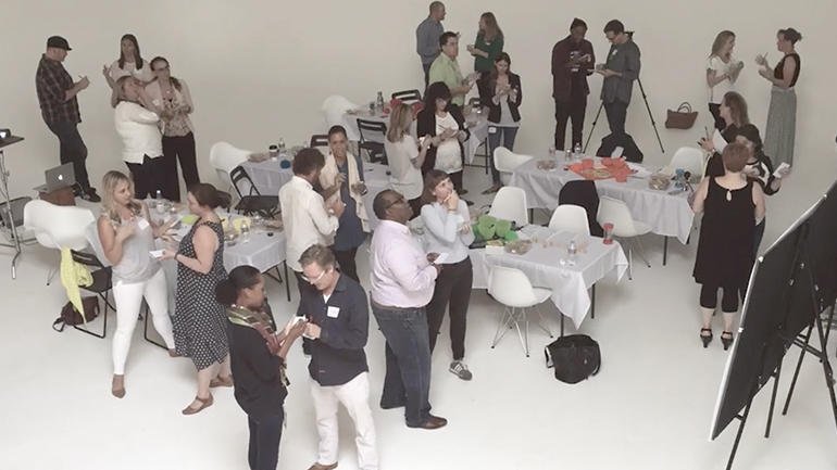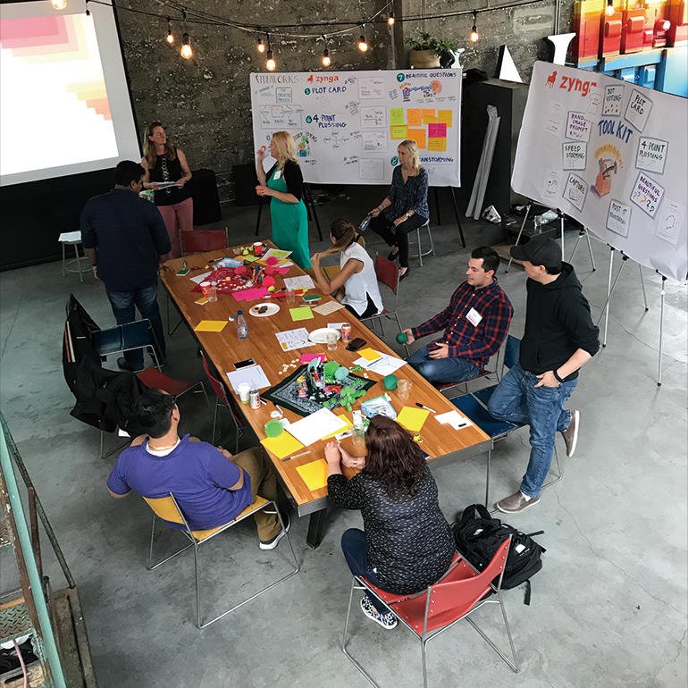 このプロセスの開発に着手した頃、部屋にいろいろな人々がいればいるほどよいだろうとFUNWORKSでは考えていた。しかし、いろいろな人がいるのは、一見して楽しそうに聞こえるが、実は混沌している状態は楽しくはない。大きな声だけが聴こえて、小さな声はかき消えてしまう従来のブレストのようになってしまうのを避けて共同セッションを実施するには、ある種のストラクチャーが必要となる。